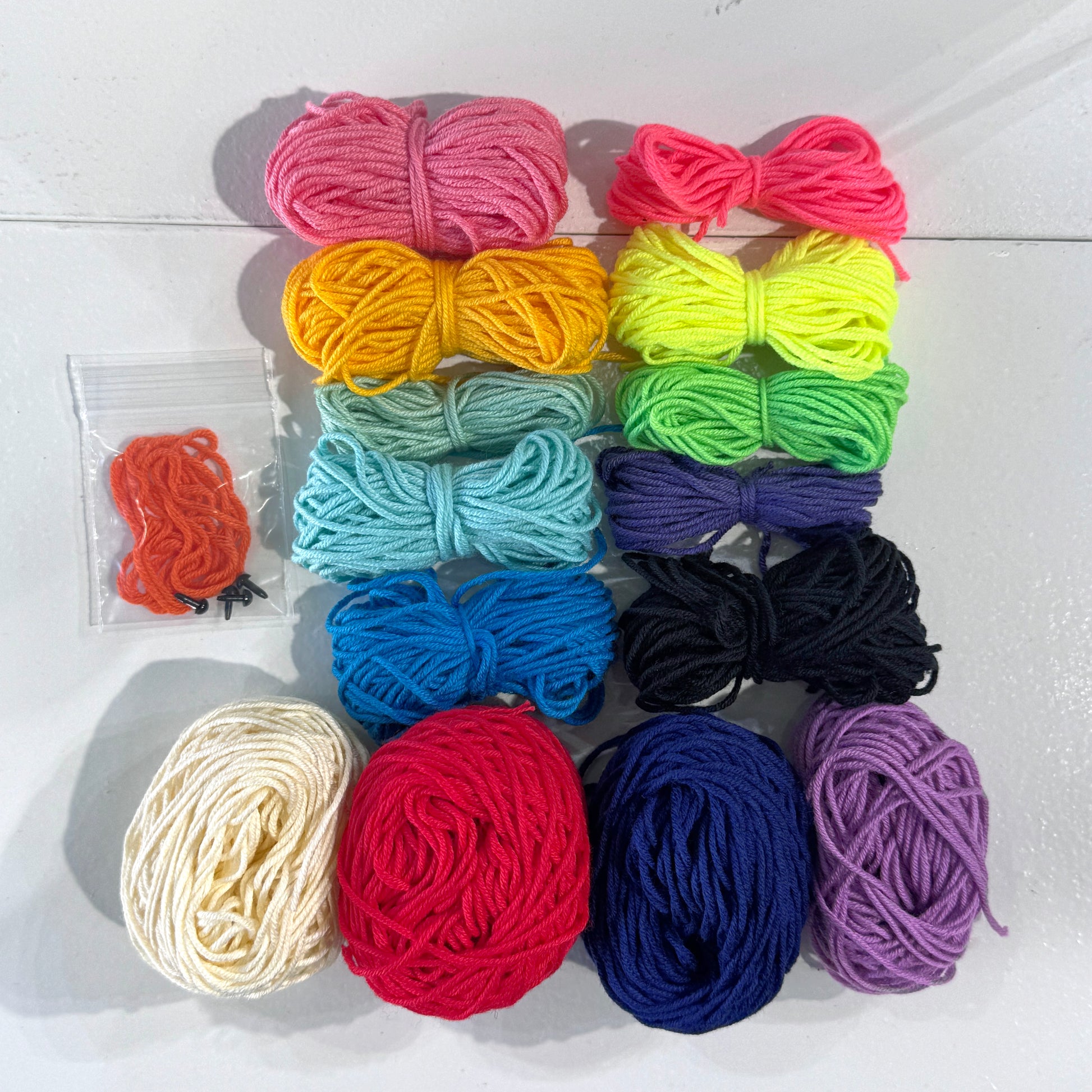 わかりやすいカラーのA3サイズオリジナル編み図と、15色の糸がパックされた豪華な内容です。